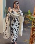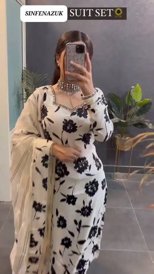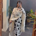 This three-piece stitched lawn dress features intricate details such as cutwork embroidered sleeves, lace on the neckline. The floral-style digital printing on the trousers adds a modern touch, while the elagant lawn dupatta boasts digital prints and shuttle-less lace work on all four sides. Perfect for a stylish and elegant look.