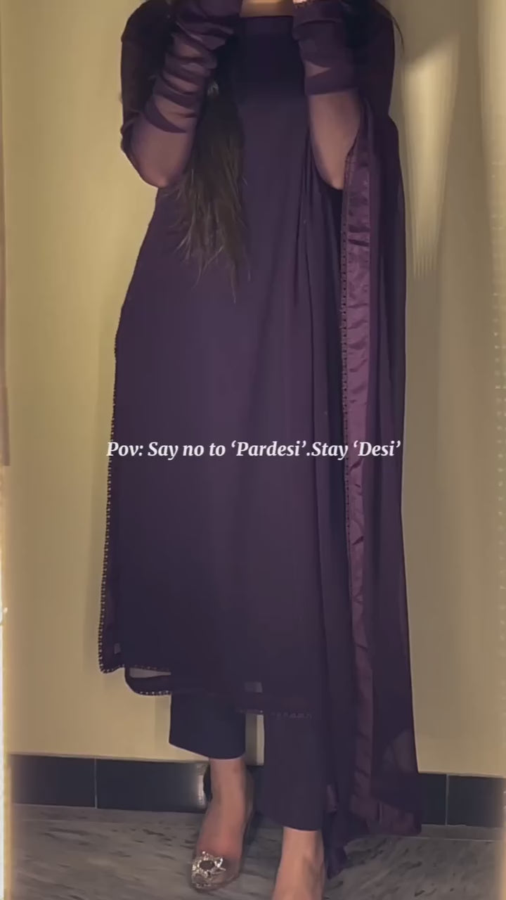 This is a 3-piece stitched ensemble. A chiffon shirt with a delicate lace on sleeves and border. It is paired with straight trouser. It comes with a elegant dupatta.
